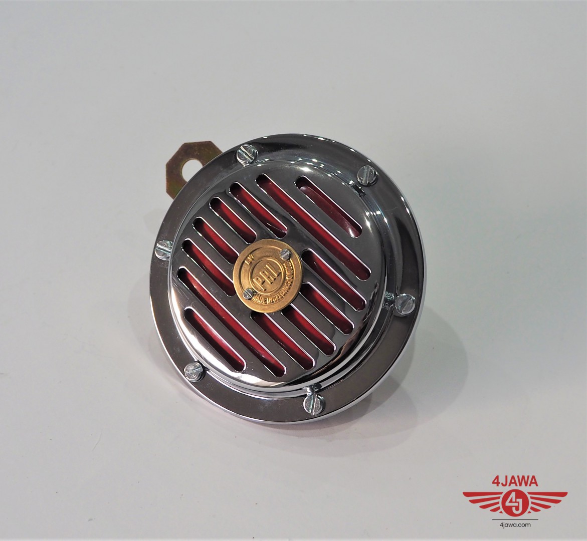 Horn 6V, PAL, red, chrome, replica, Jawa, CZ