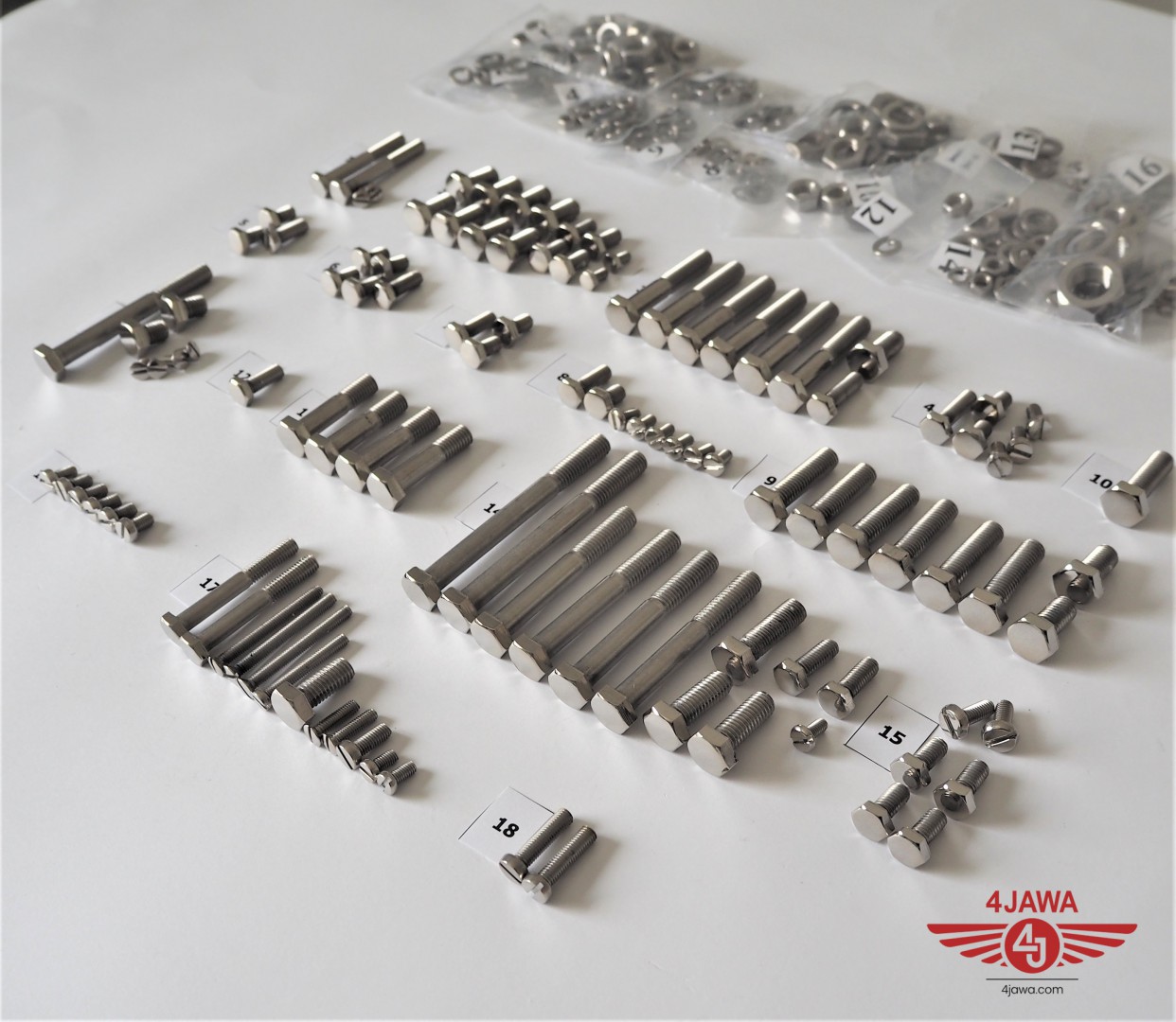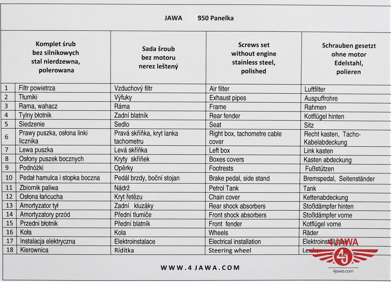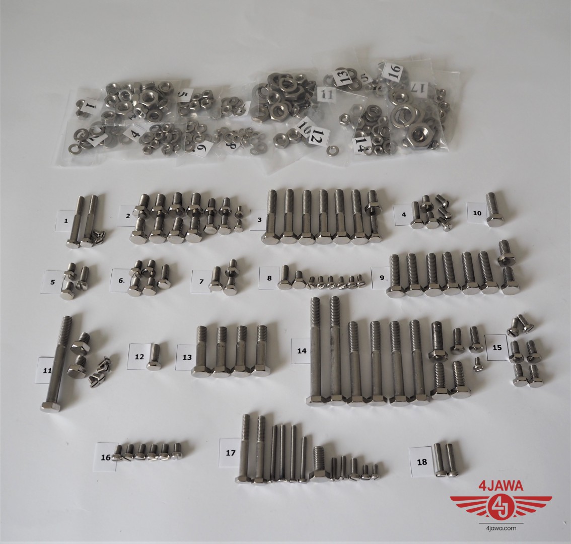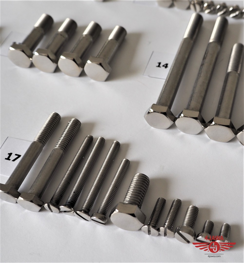 Screw set, all without engine, stainless/polished, Jawa 350 Panelka type 360/361 - 002408