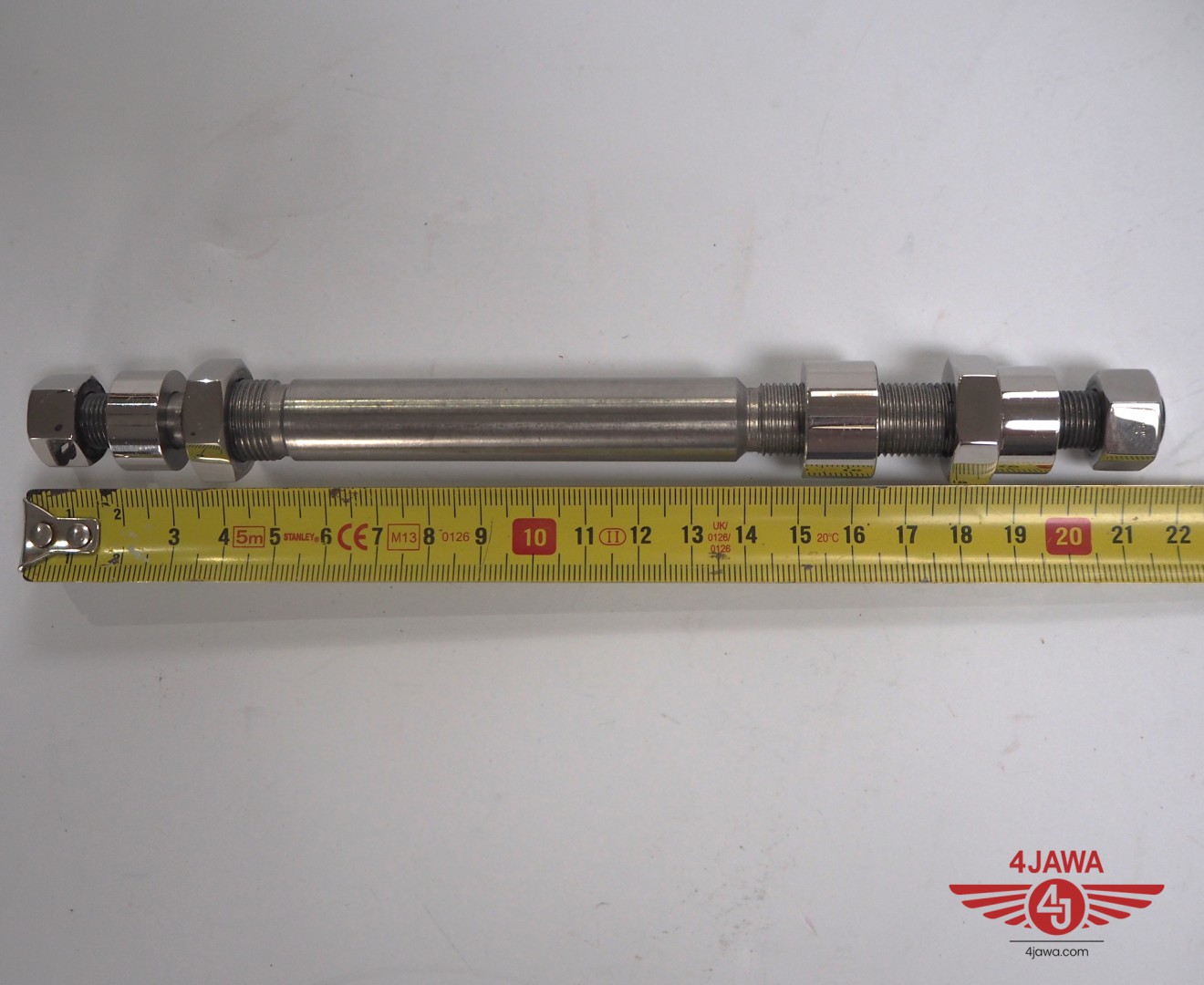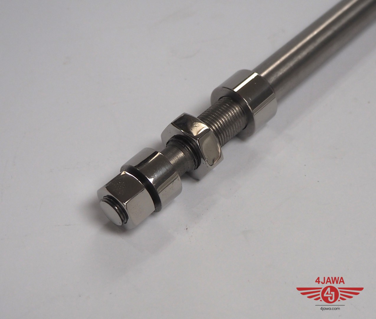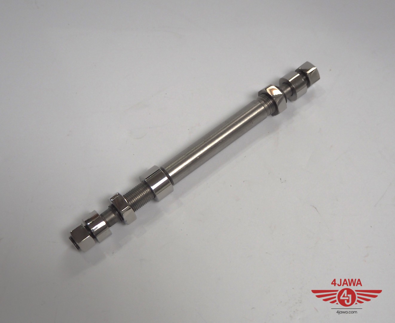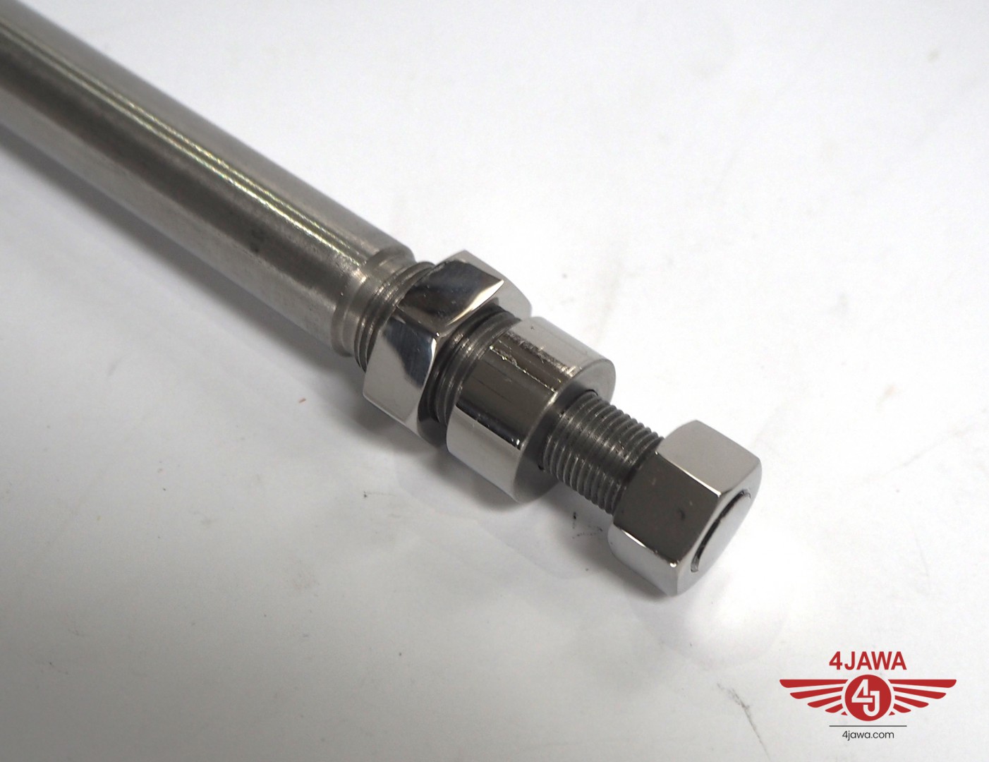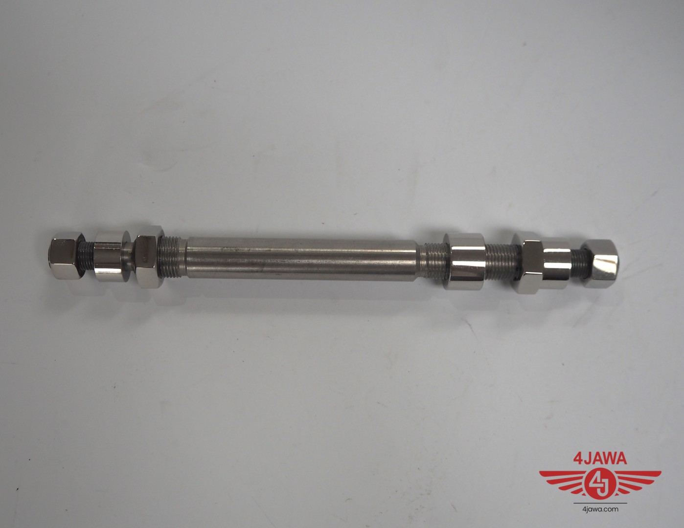 Wheel axis rear with nuts, wheel hub 150 mm, stainless steel, polished, Jawa 175/250 Special - 002776