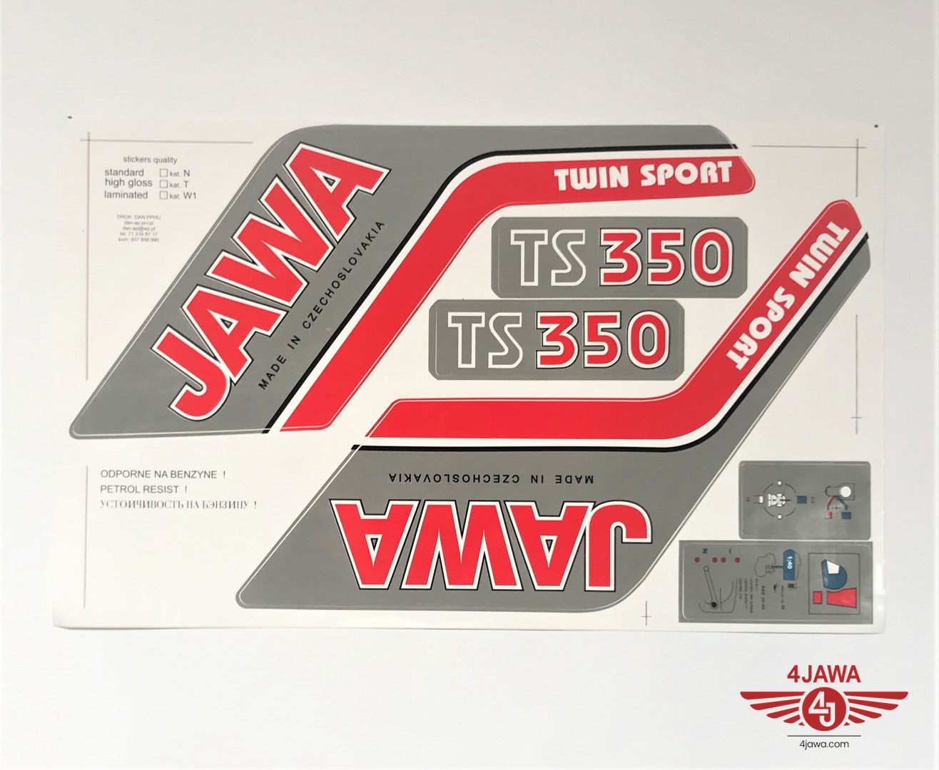 Fuel tank sticker + inscription TS350, 6 pieces, Jawa 638-639