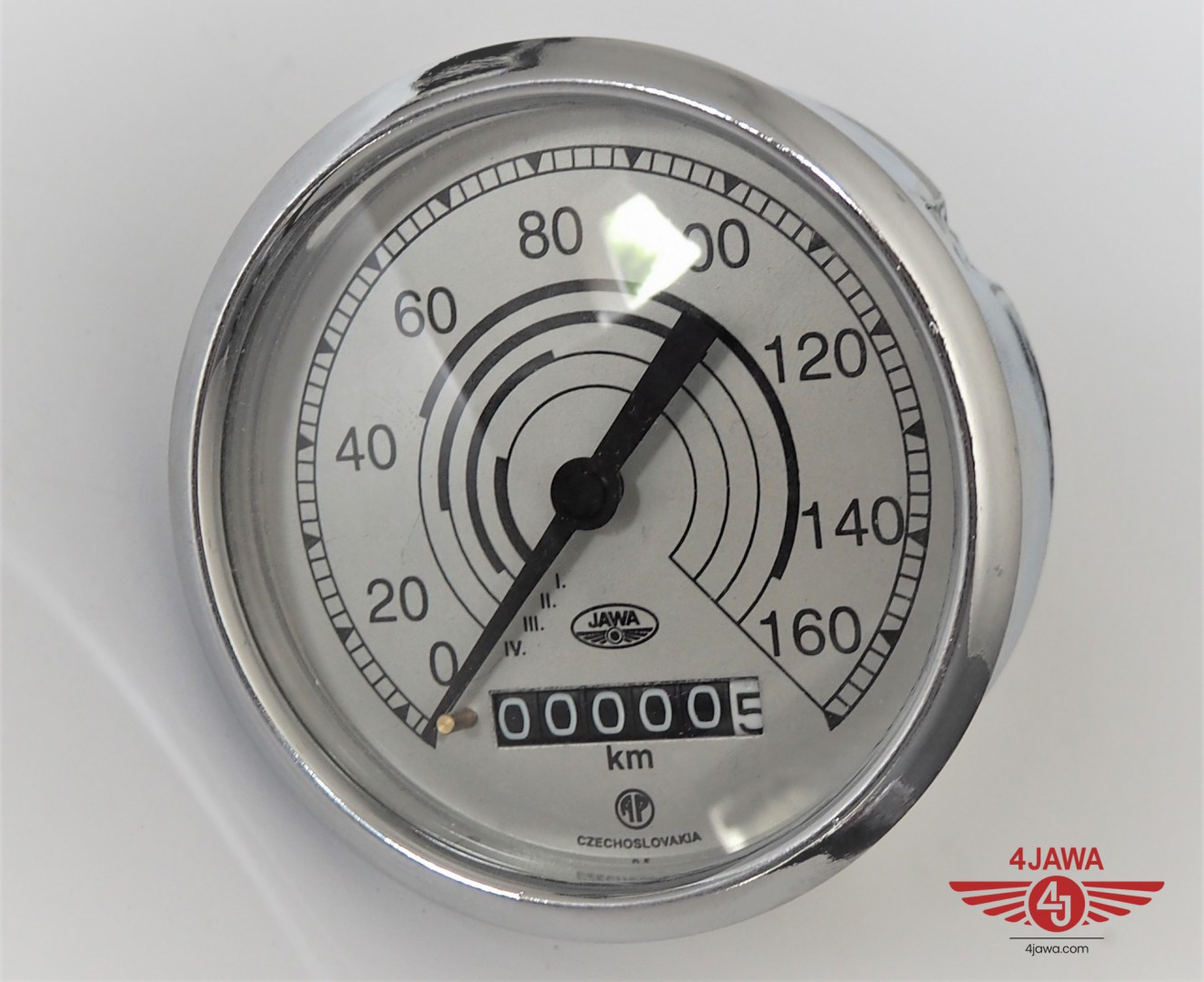 Speedometer, 160 km/h, chromed frame, replica, Jawa 350 Perak