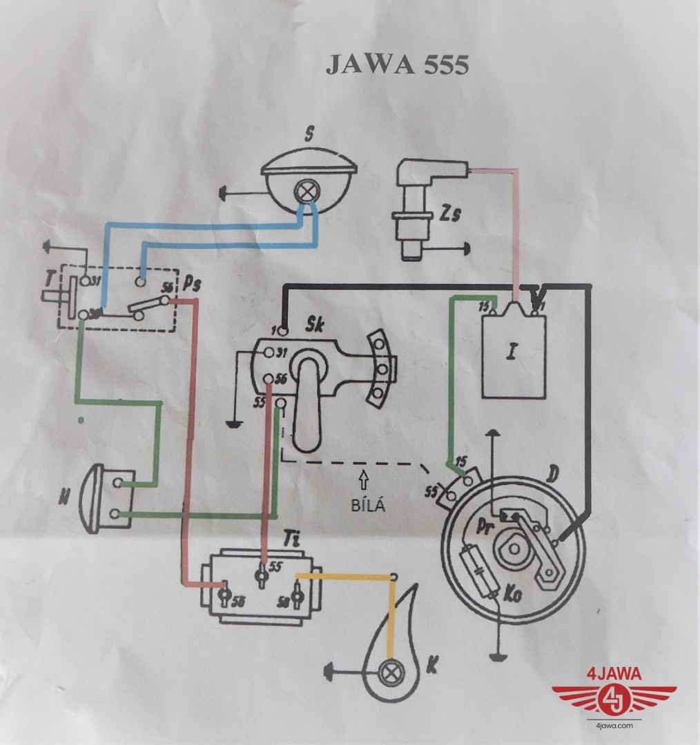 Elektroinstallation, Jawa 50 type 555 with one seat