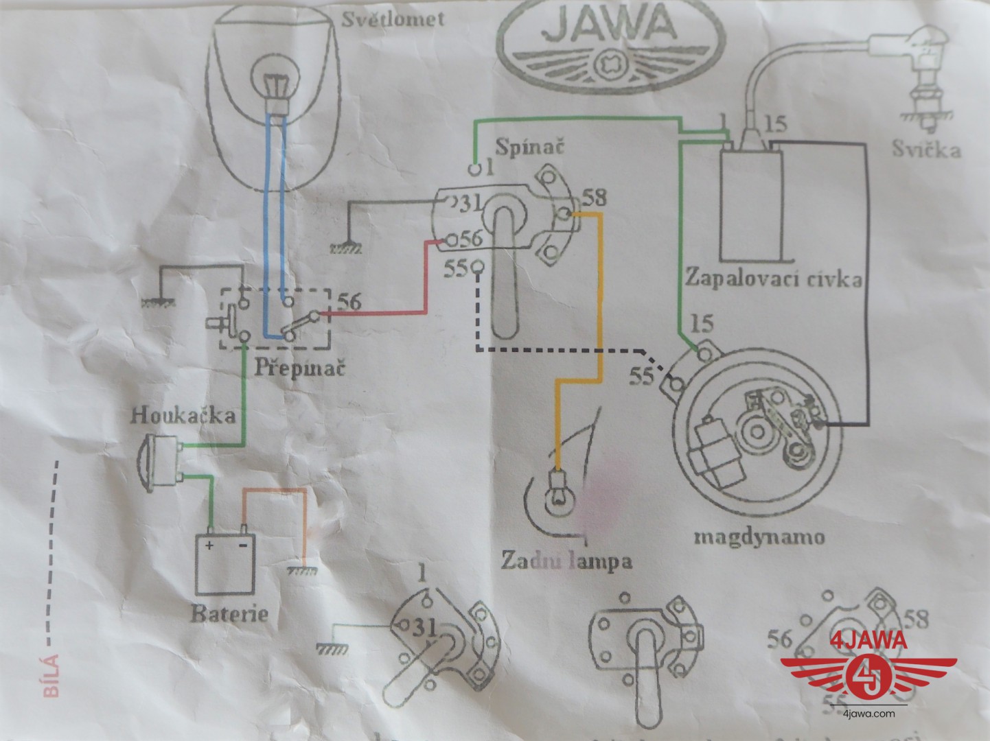 Elektroinstallation, with a horn under a cover, Jawa 50 type 550