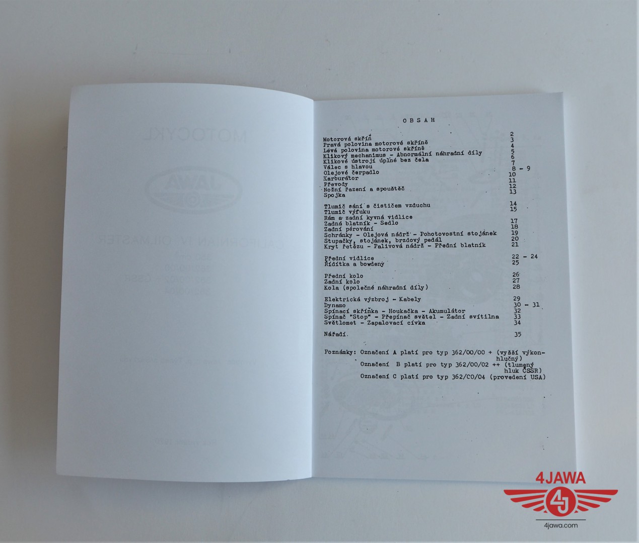 Spare parts catalogue JAWA CALIFORNIAN - L.CZECH, A5 format, 70 pages - 004391