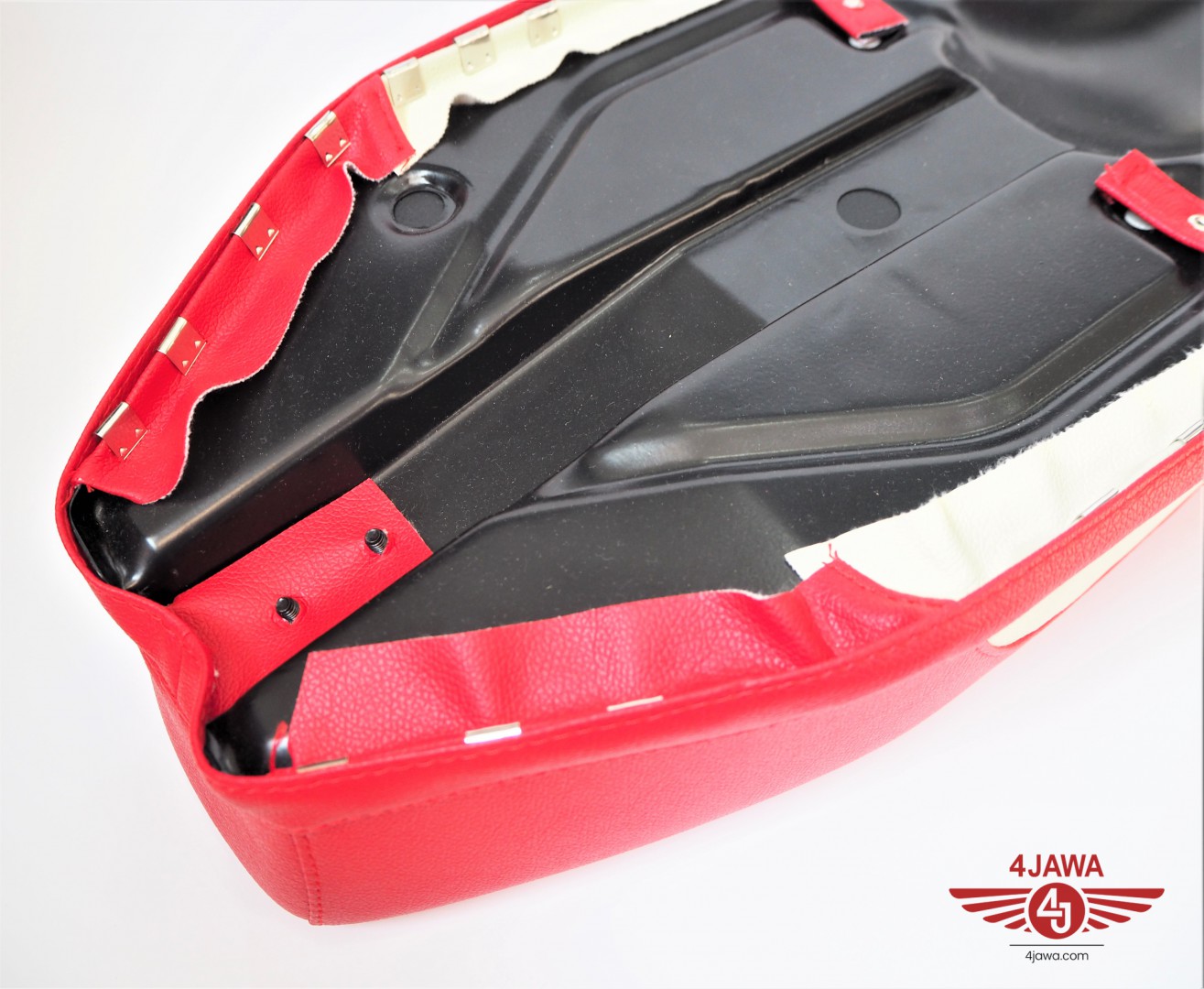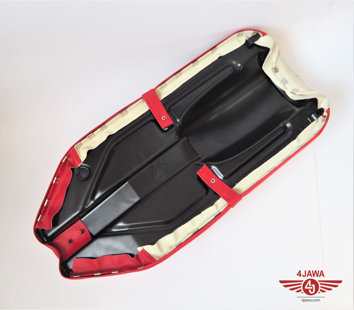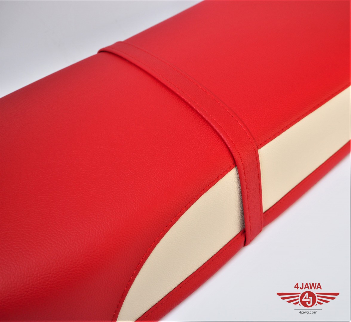Seat, leatherette, red-cream, Jawa, CZ - 005585