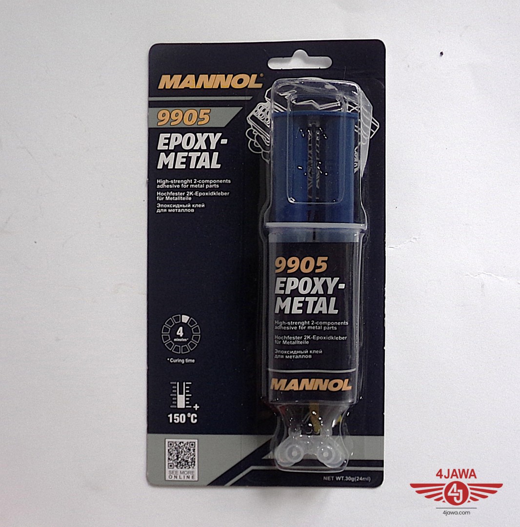 Epoxy-Metal - two-component epoxy adhesive for fast and reliable bonding of steel, aluminum, brass, copper, iron, tin, lead and various alloys. Starts to harden after 4 minutes. Hardening occurs within 2-3 hours and the bond has high mechanical shear strength (3-5 N/mm2) and can withstand temperatures up to 150 °C. Suitable for filling gaps and voids, drilled holes, for repairing damaged threads, and as a filler for flat surfaces. Also bonds ceramics, concrete, wood and their components. To achieve an optimal bonding result, the surfaces must be clean and degreased.