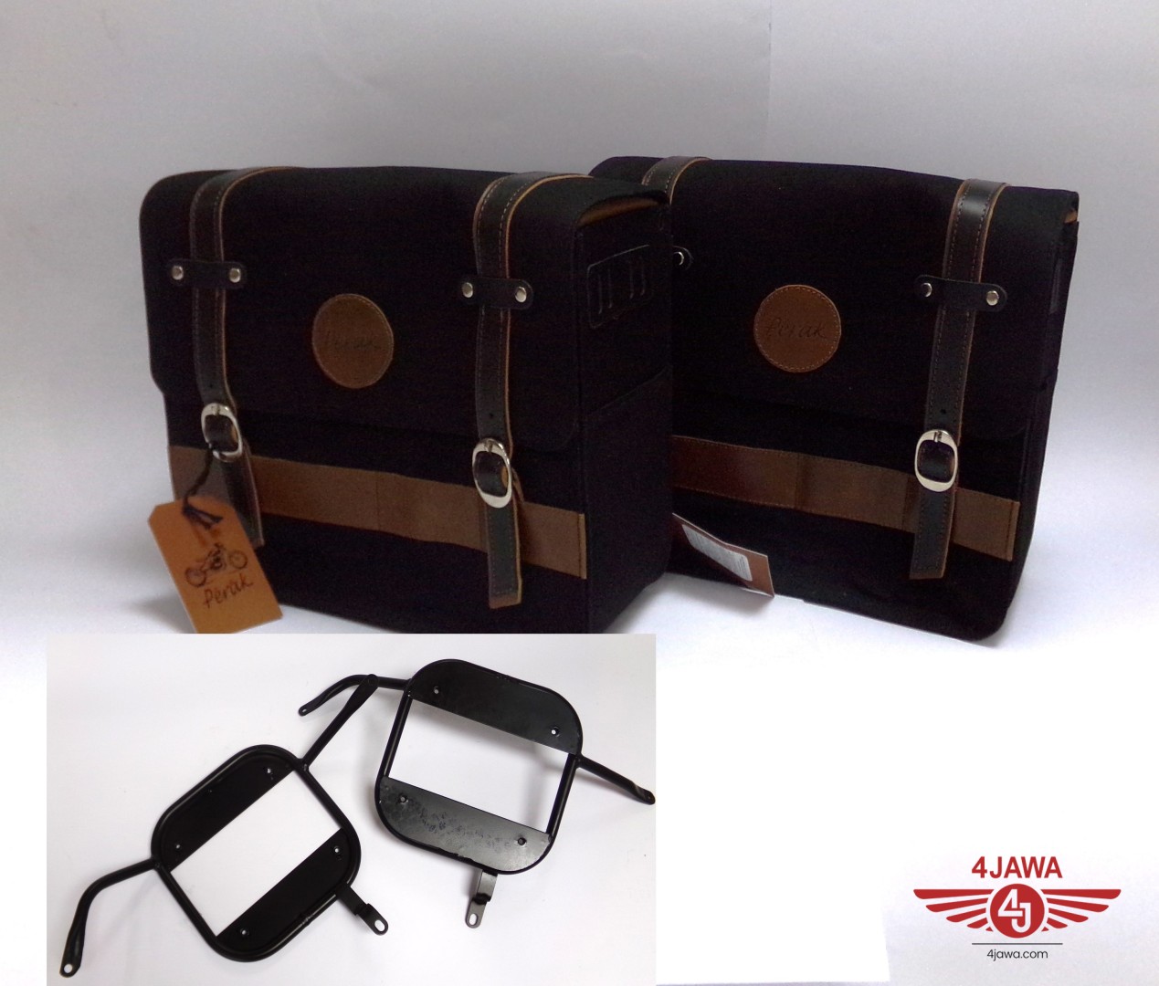 Sada brašen, Černe + držáky bocni brašny, Jawa 350 CL Perak, 42 Bobber - 007350