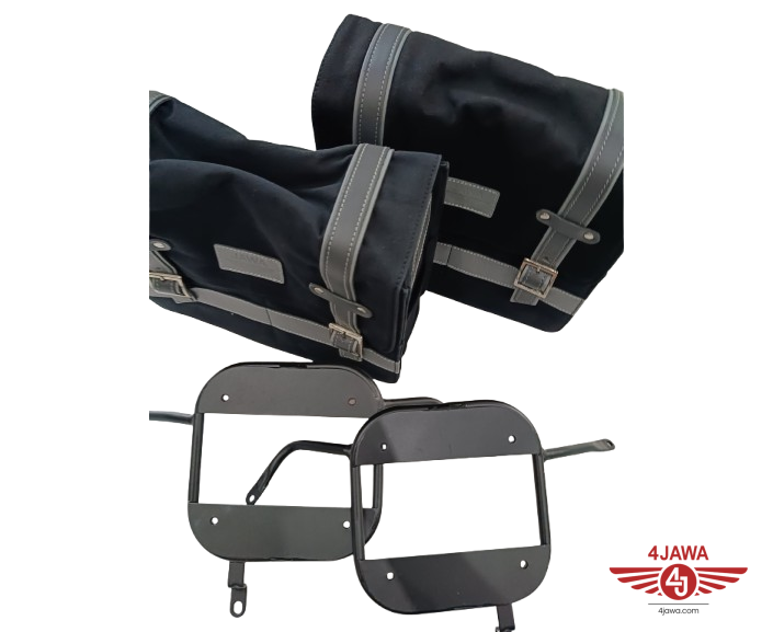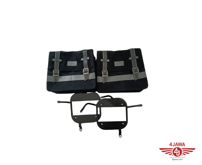 Satz Taschen, schwarz + Seitentaschenhaltern, Jawa 350 CL Perak, 42 Bobber - 008285