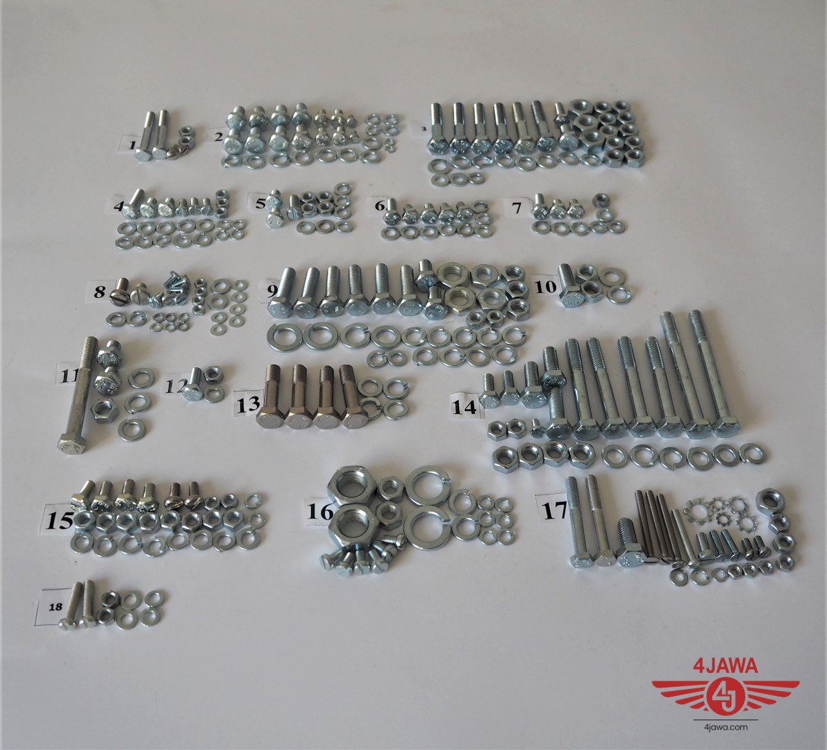 Komplet śrub, bez silnikowych, ocynk, Jawa 250/353 - 002108