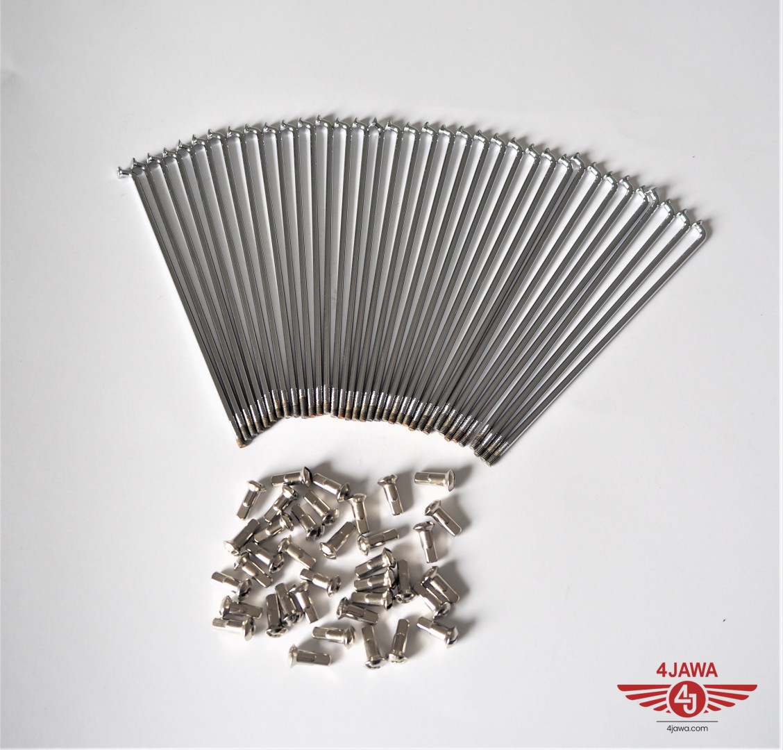 Szprychy i nyple, komplet 36 szt, M3,5-148, chrom, Jawa 555/05/20/21/23