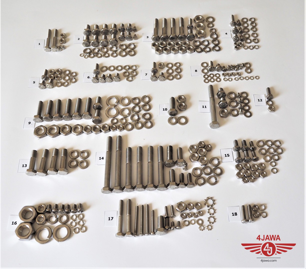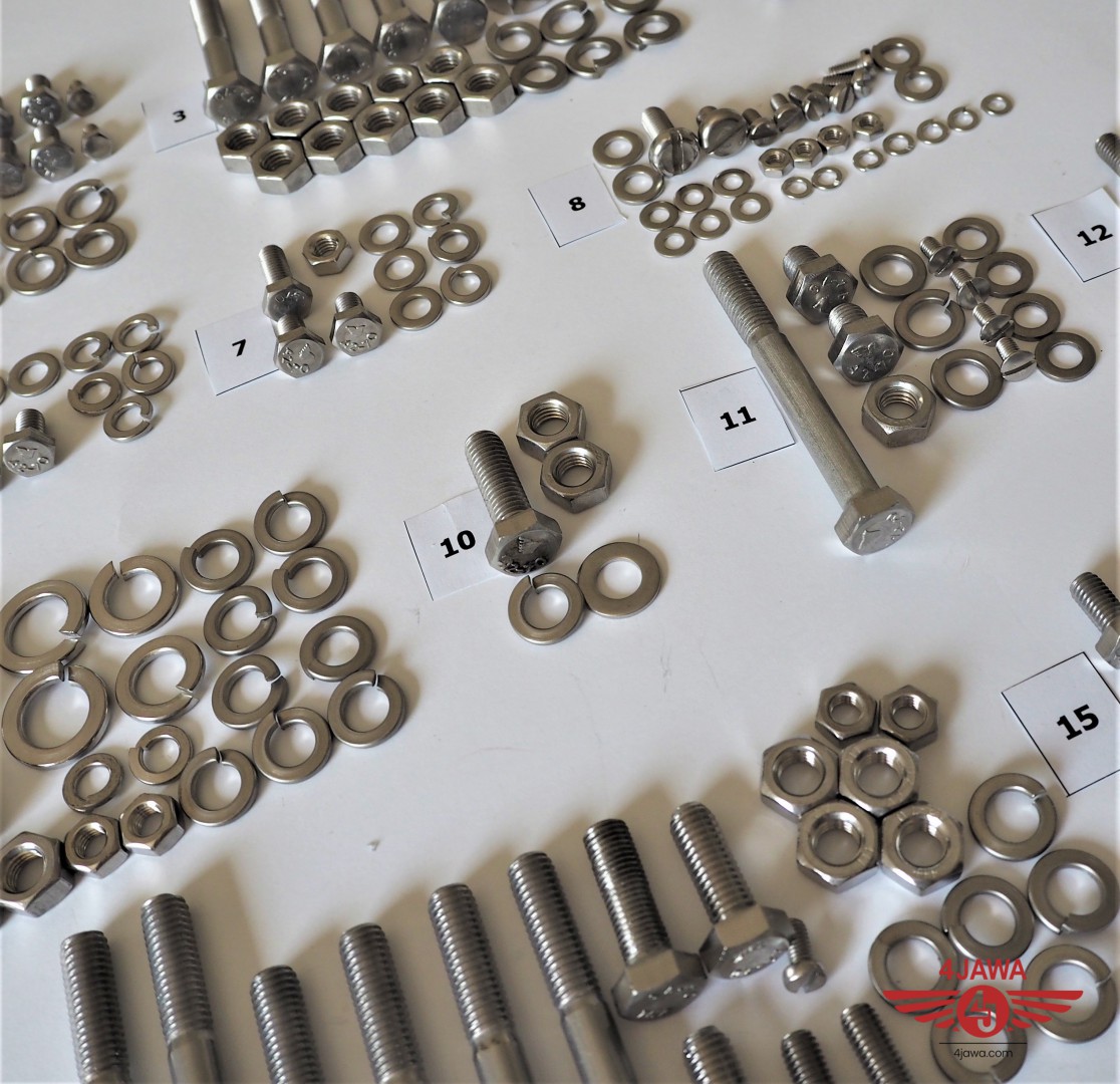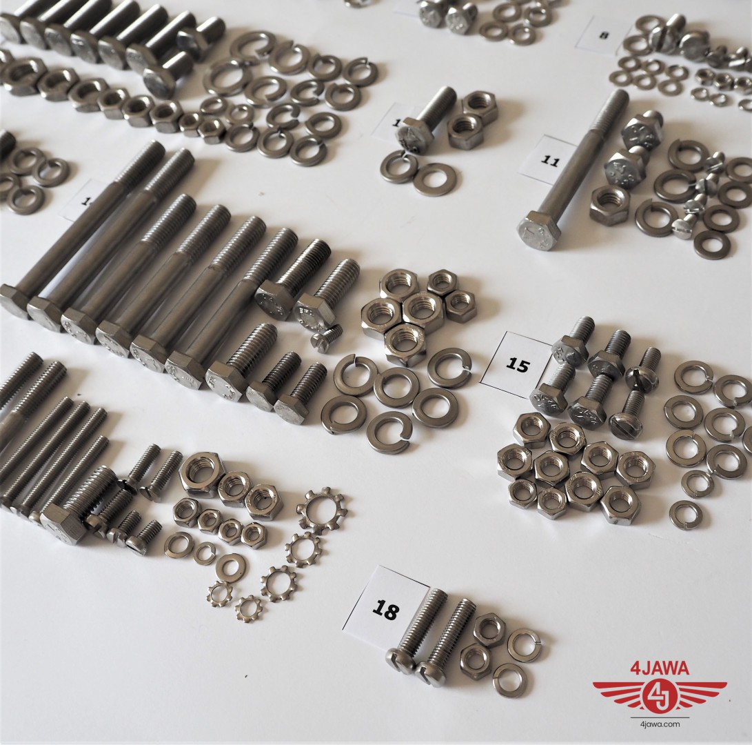 Komplet śrub, bez silnikowych, nierdzewne/niepolerowane, Jawa 350 Panelka typ 360/361 - 002407