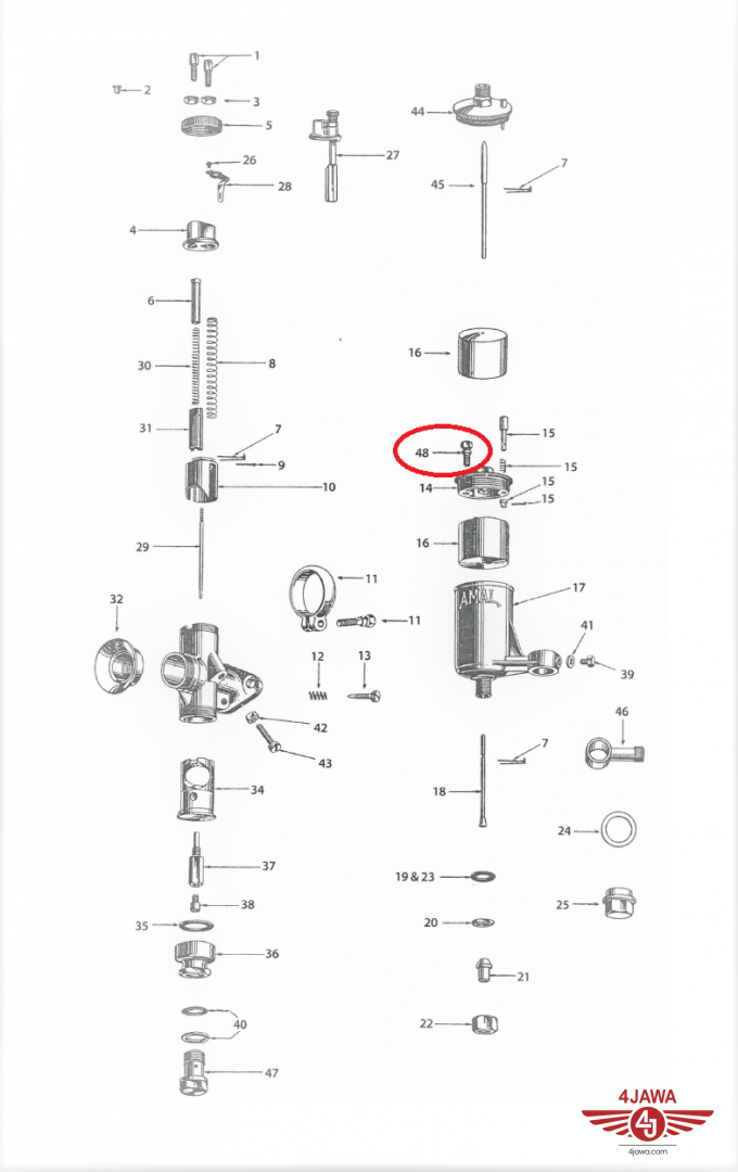 Śruba blokady komory pływakowej, calowa, ocynk, AMAL - 002439