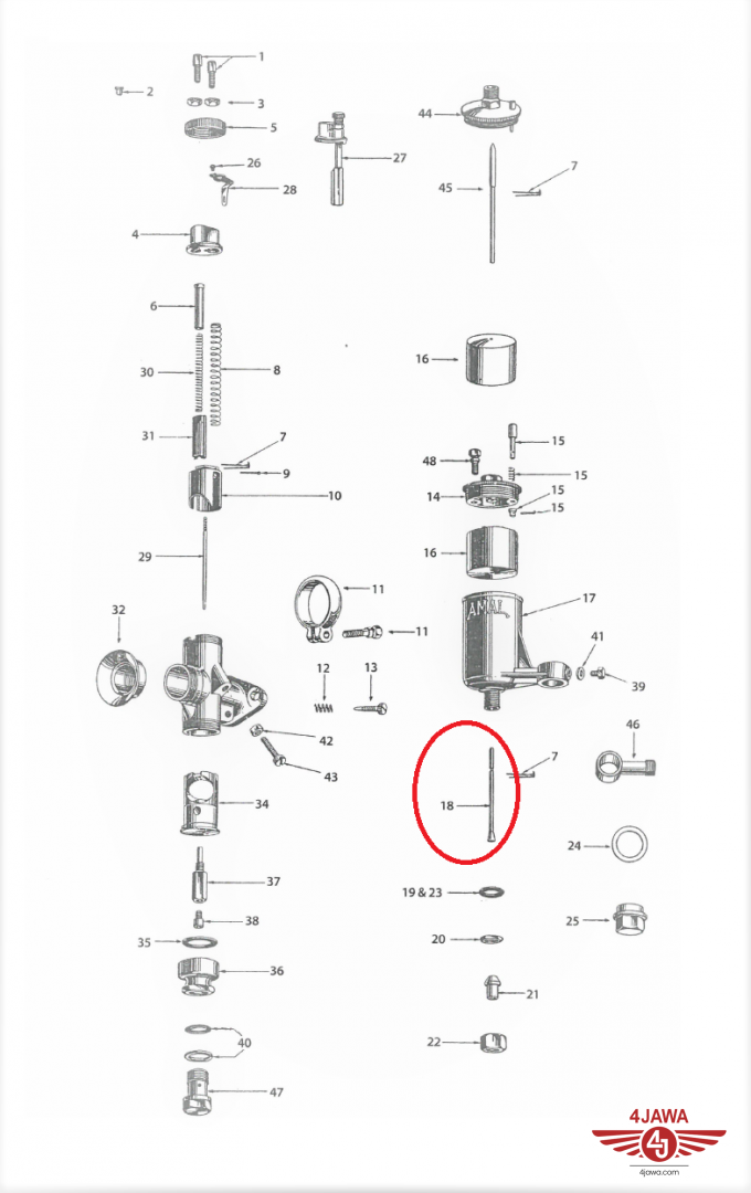 Zaworek iglicowy L74,4, AMAL 76/276