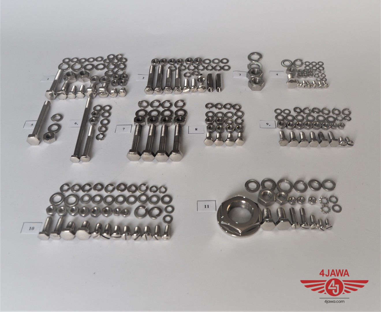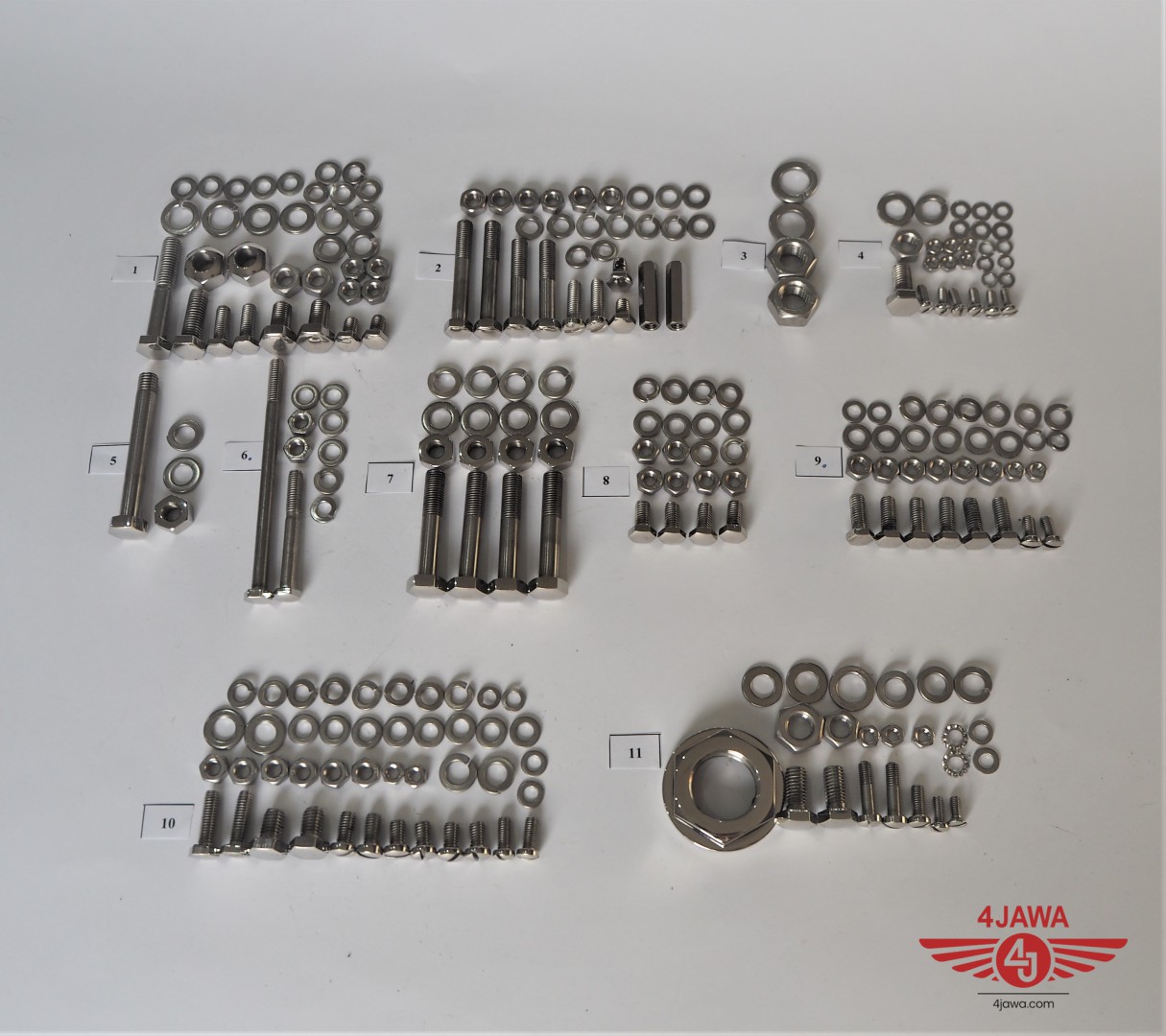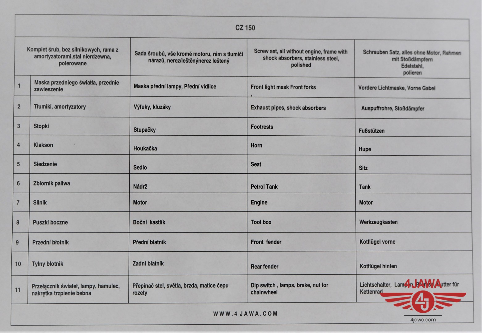 Komplet śrub, bez silnikowych, rama z amortyzatorami, nierdzewne/polerowane, CZ 150
