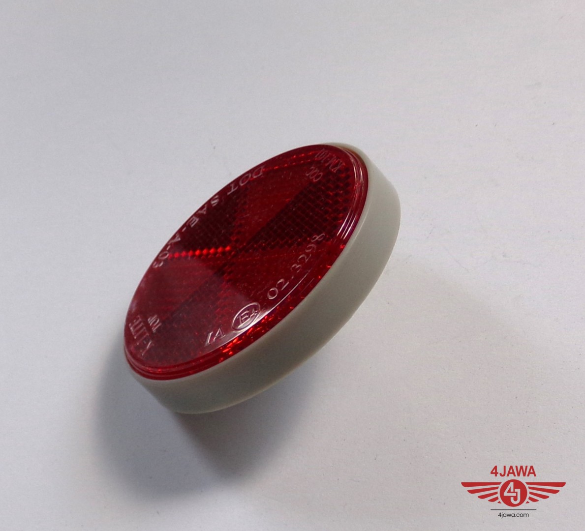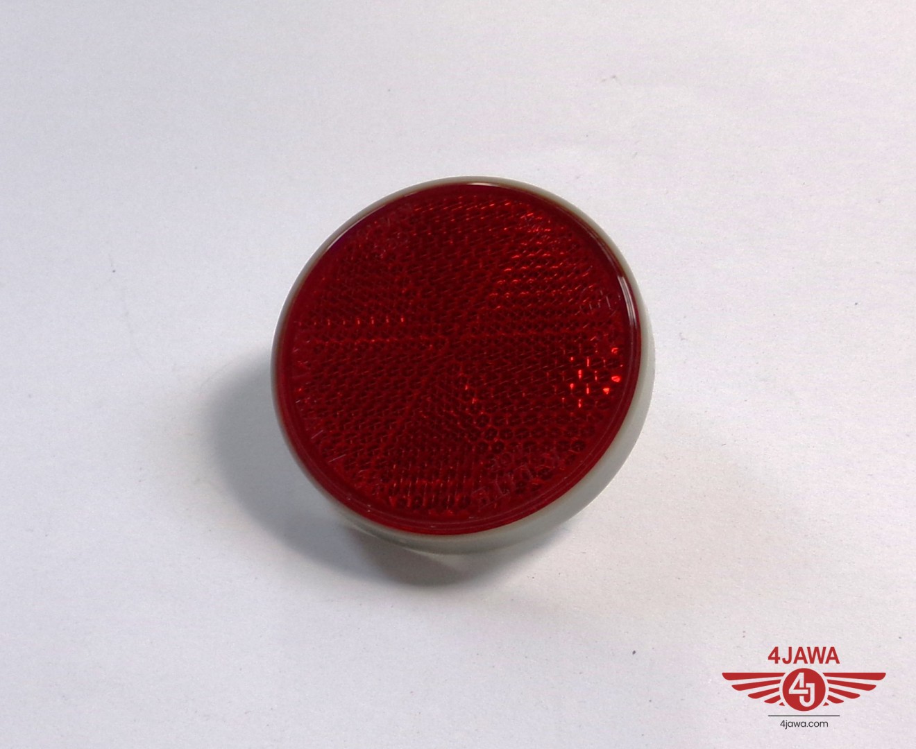 Odblask czerwony, ze śrubką, 59 mm, szara ramka, plastik, Jawa, CZ - 007279