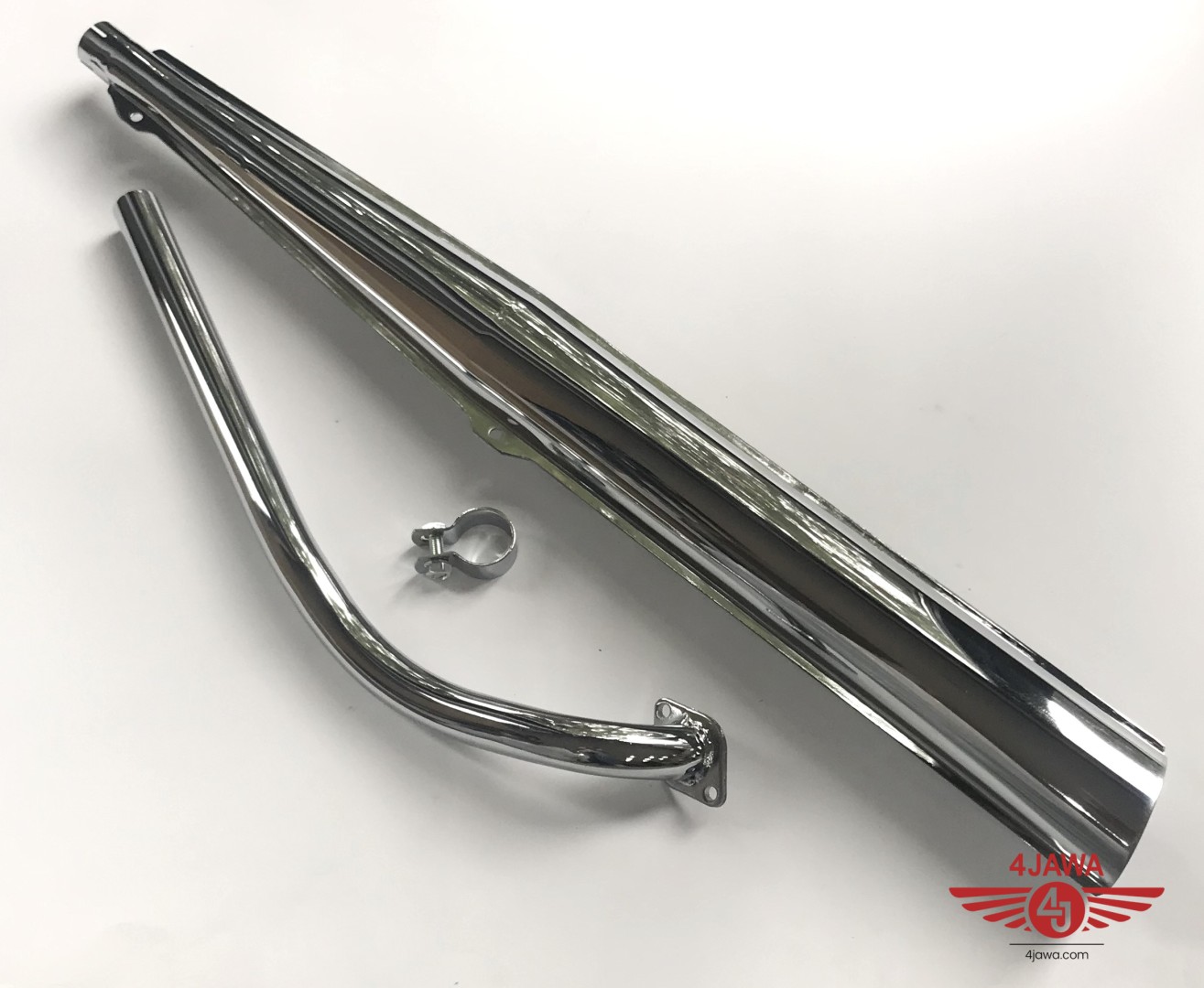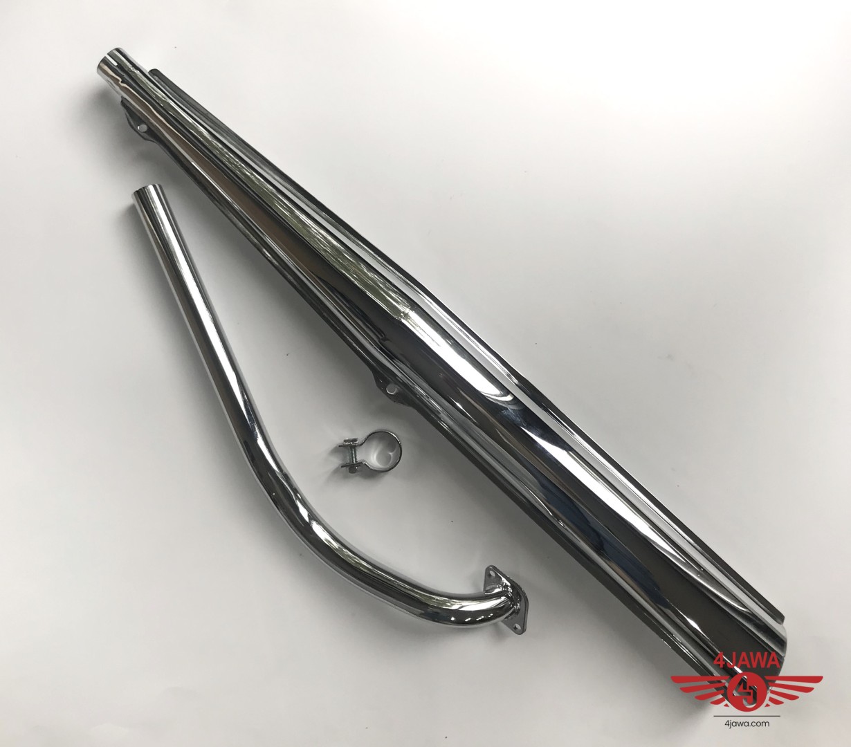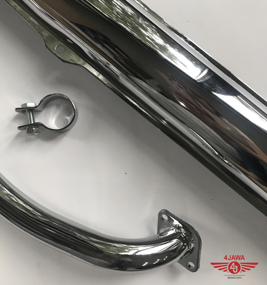 Tłumik wydechu + kolanko wydechu, chrom, zestaw, Jawa 23 (DUELLS)