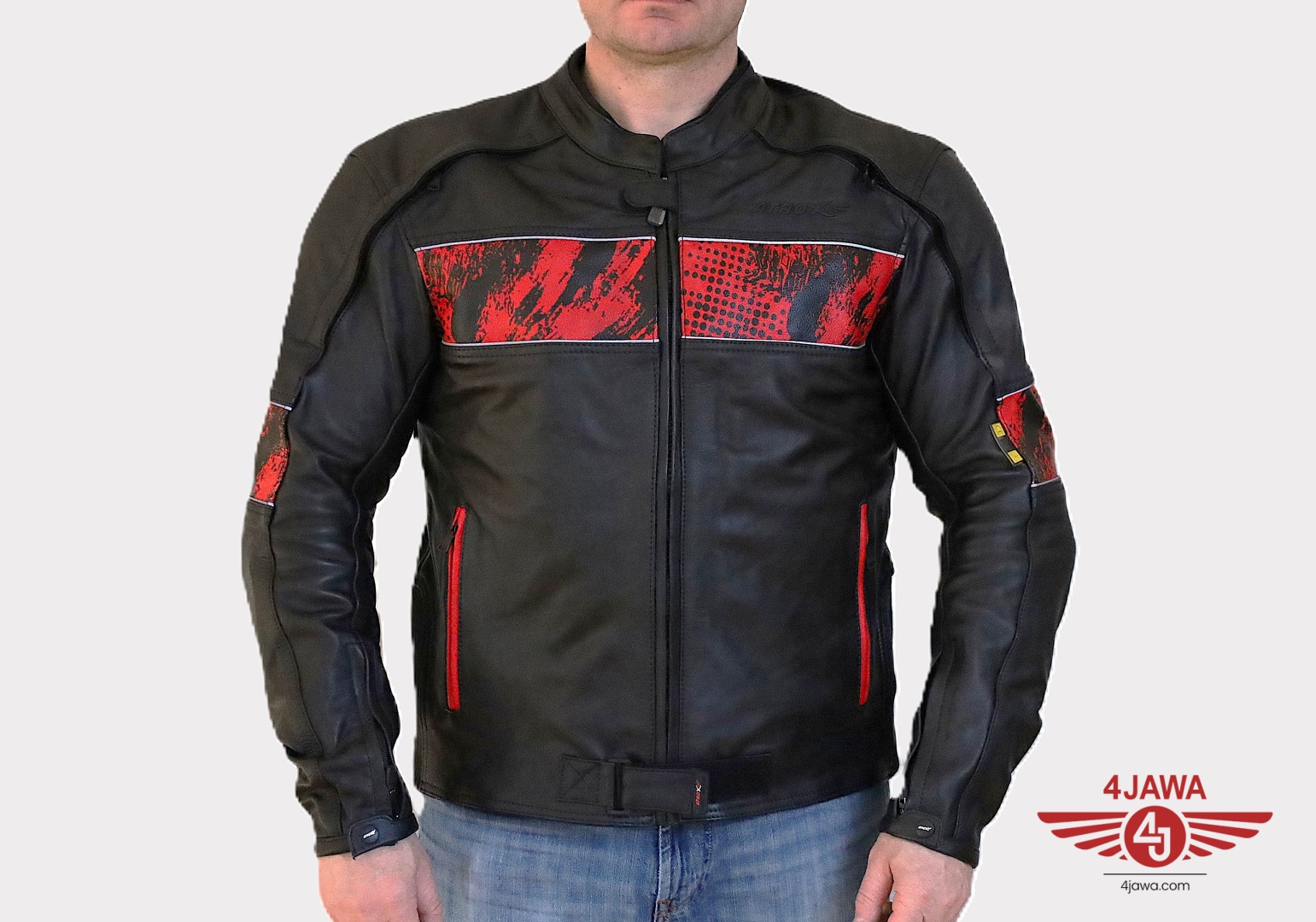Kurtka motocyklowa, męska, skórzana, czarno-czerwona, rozmiar 2XL - 008454